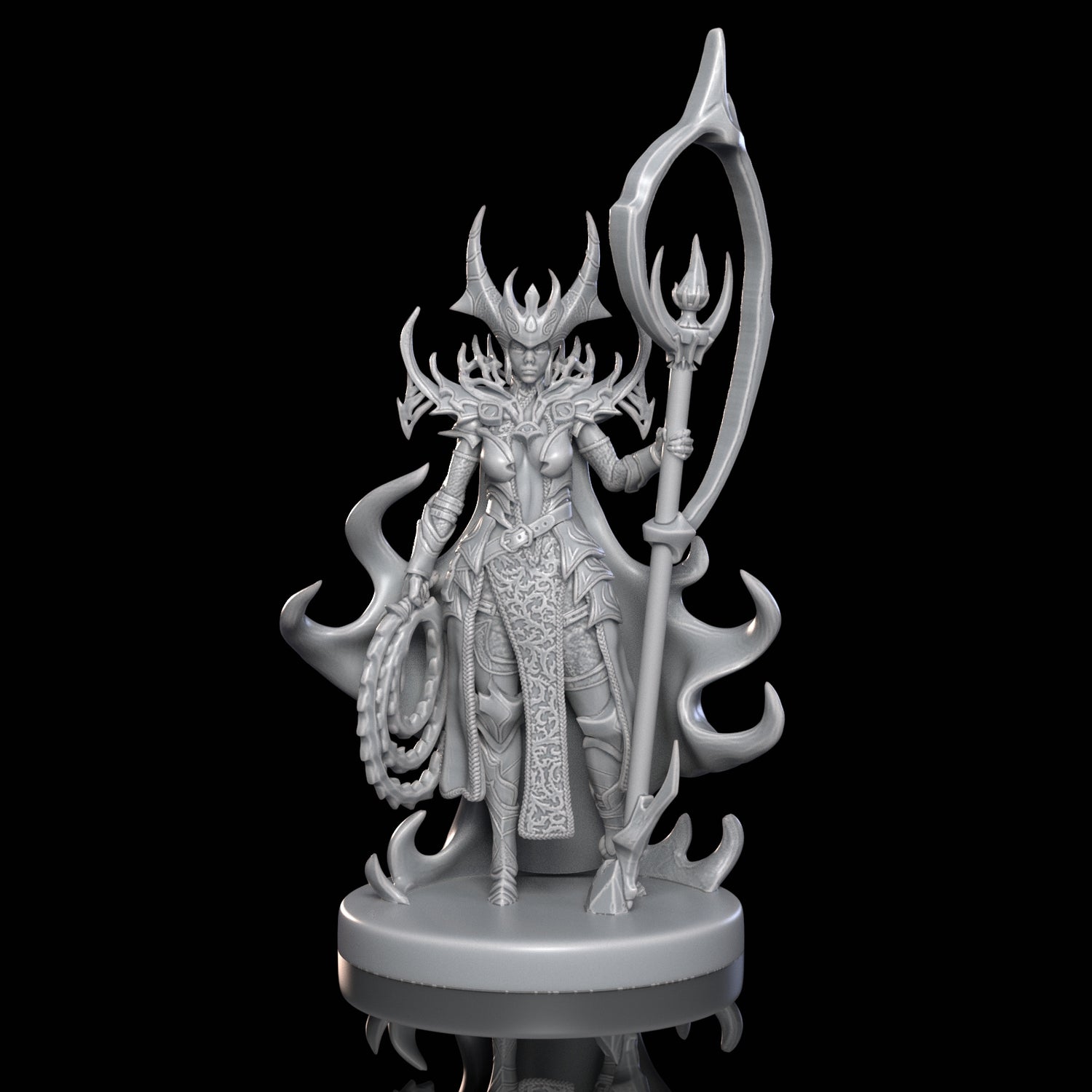 Born of Tenebrian nobility, she seized the throne through intrigue and dark magic. She rules with despotic authority, driven by boundless ambition and the desire to assert her people’s supremacy.